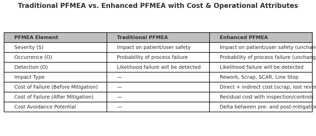 By extending PFMEA with cost and operational attributes, organizations can transform a compliance-driven risk management tool into a strategic enabler of operational excellence.