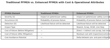 Figure 1: Traditional PFMEA vs. Enhanced PFMEA Comparison Table
