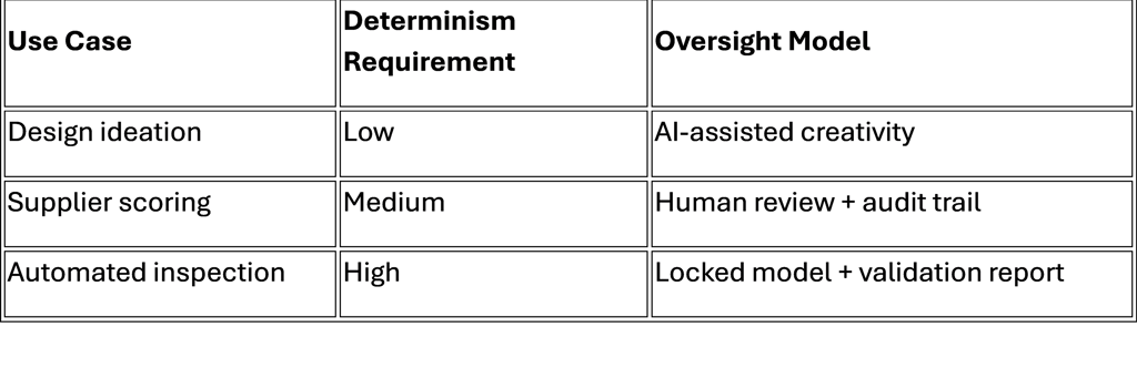 Lesson: In regulated manufacturing, model versions and decisions must meet the same traceability standards as process validation. Non-determinism is not an excuse for lack of control.