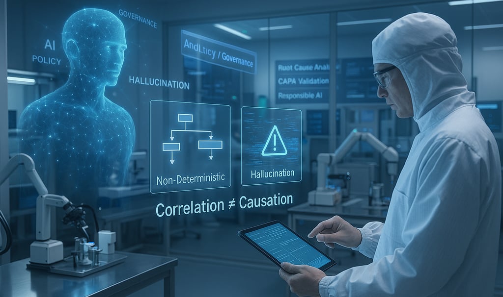 A contract manufacturer used AI to draft supplier audit summaries. The system “filled in” missing clauses based on similar reports, including one claiming ISO 13485 § 7.5.5 compliance for a supplier where it didn’t apply.